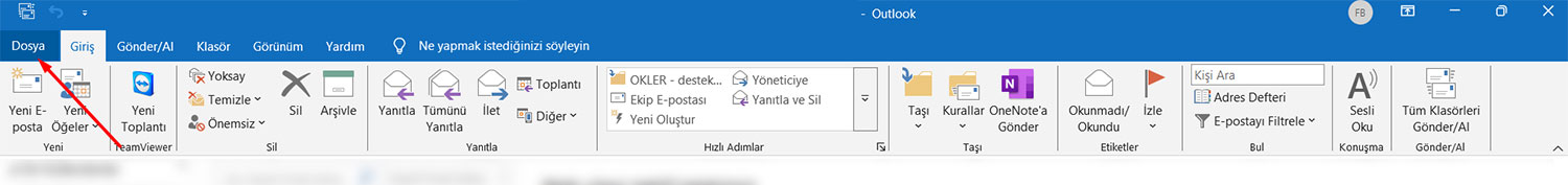 Office 2019 ile gelen Outlook uygulamasını başlatın. Sol üst köşeden “Dosya (File)” menüsüne tıklayın.
