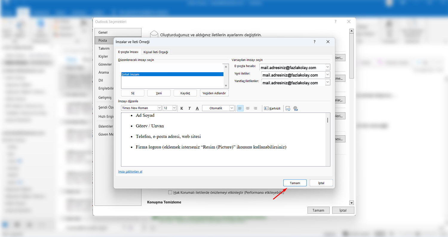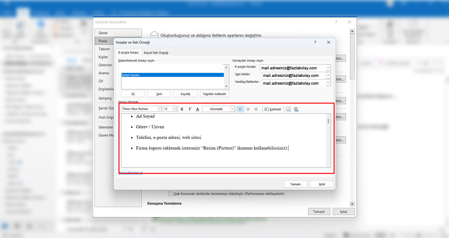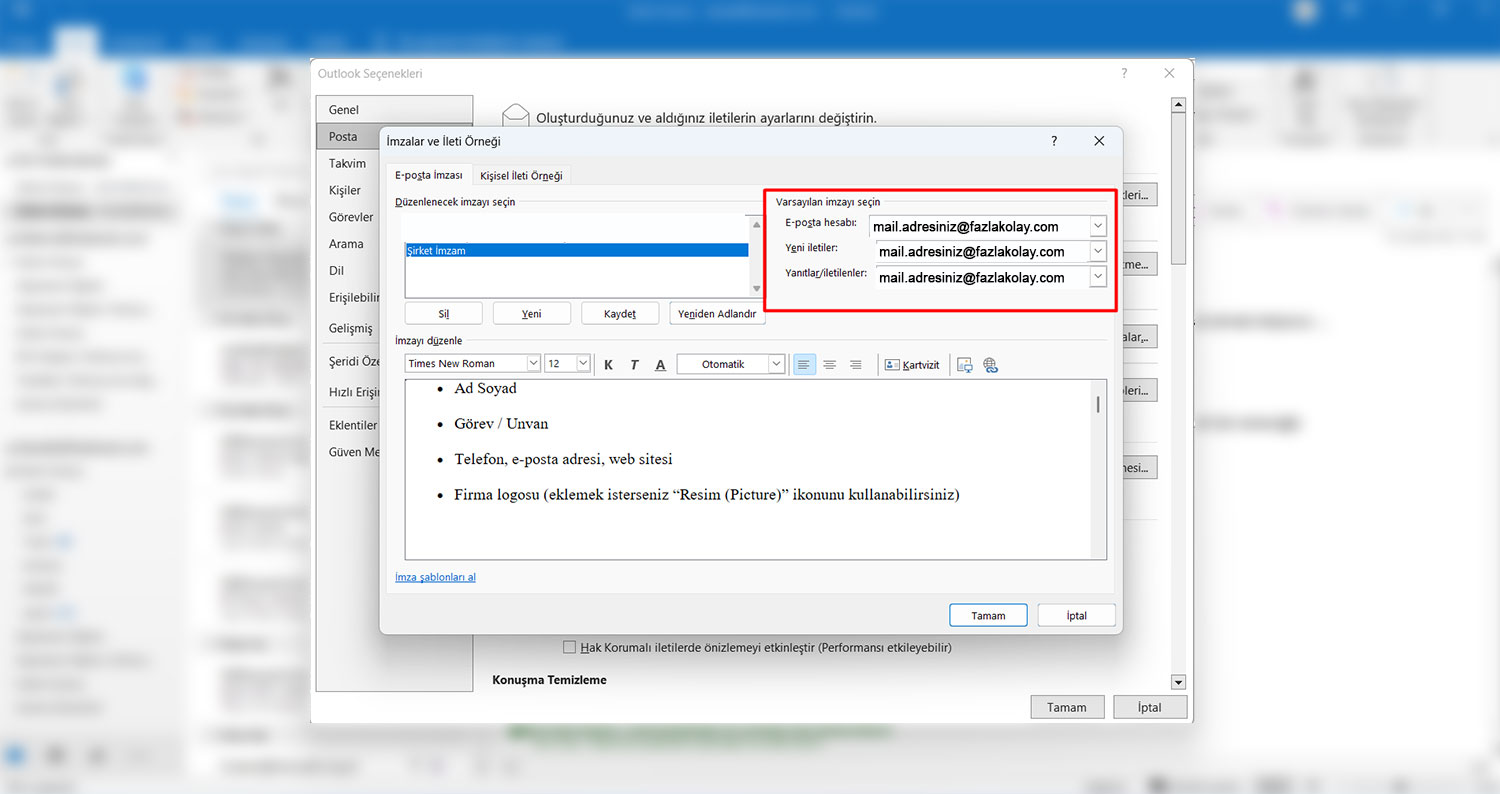 Böylece her yeni e-postada imzanız otomatik olarak görünecektir.